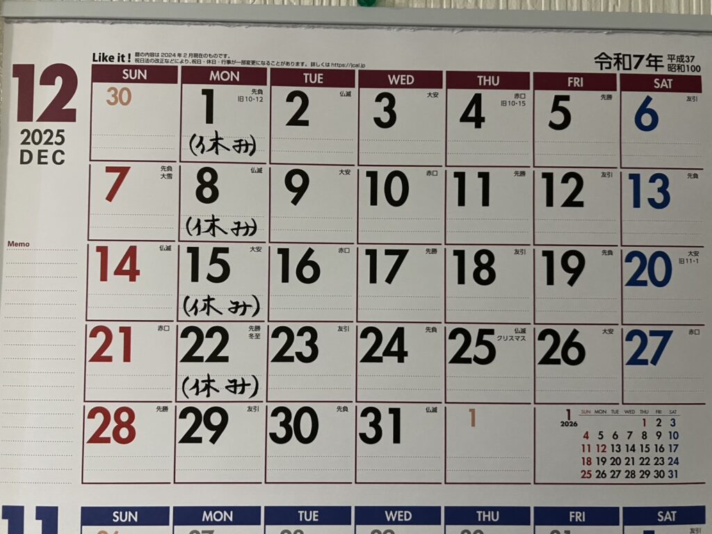 年末年始の営業日、営業時間は通常営業と異なる場合がございます。決定次第ホームページに掲載させていただき